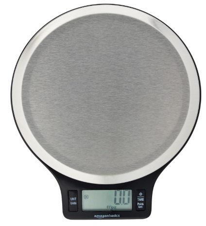 Amazon Basics Digital Kitchen Scale with LCD Display, Batteries Included, Weighs up to 11 pounds, Black and Stainless Steel