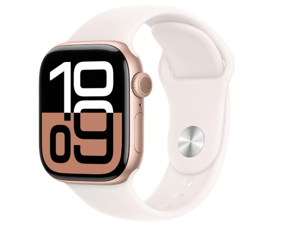 Apple Watch Series 10 [GPS 42mm case] Smartwatch with Rose Gold Aluminium Case with Light Blush Sport Band – S/M. Fitness Tracker, ECG App, Always-On Retina Display, Water Resistant