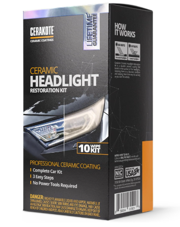 3 EASY STEPS! – Cerakote’s Headlight Restoration Kit is a simple, 30 minute process. Step 1: Our Oxidation Remover wipes remove stubborn oxidation. Step 2: Using our supplied sanding materials, remove any remaining deep oxidation. Step 3: Cerakote’s industry leading ceramic restores the headlight to like-new!