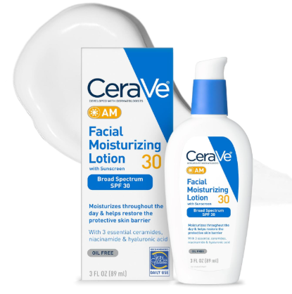 CeraVe AM Facial Moisturizing Lotion with SPF 30, Oil-Free Face Moisturizer with SPF, Formulated with Hyaluronic Acid, Niacinamide & Ceramides, Non-Comedogenic, Broad Spectrum Sunscreen, 3 Ounce