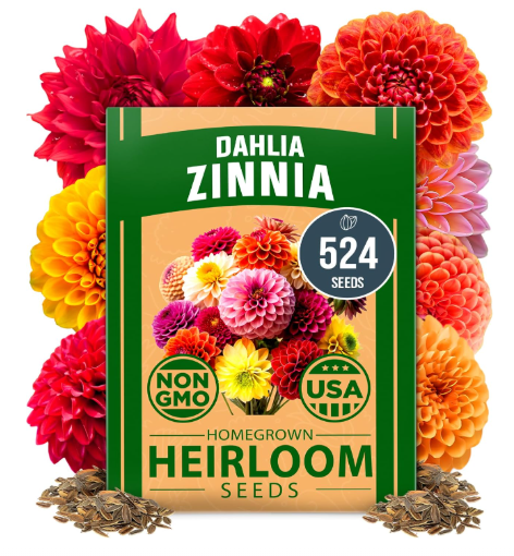 524 PREMIUM SEEDS – BRILLIANT COLOR, FAST GROWTH: This large pack includes 524 USA-packed, high-germination Zinnia Dahlia seeds that bloom into stunning double flowers in red, pink, orange, white, and more. Easy to grow, beginner-friendly, and perfect for bouquets, borders, and containers. Blooms in just weeks and lasts all summer!