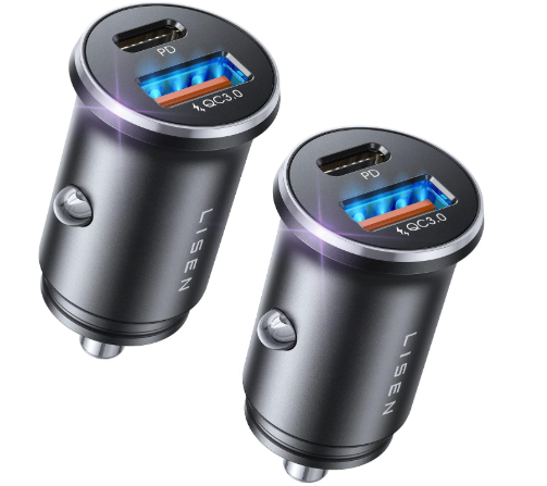 DUAL FAST CHARGING PORT: LISEN fast charging USB C car charger supporting PD 36W(Max) and QC 18W(Max) high output, can fast charge all prevailing phones and E-devices. This car charger usb c with both of USB-A and USB-C ports can work with all kinds of plugs cables. [NOTE: The fast car charger CANNOT fast charging 2 devices simultaneously.]