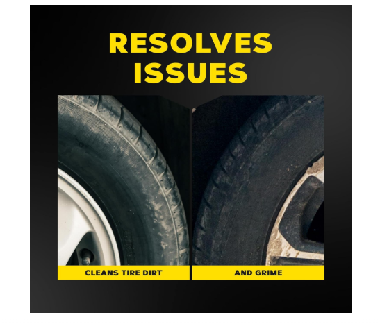 GLOSSY TIRE SHINE: Thick, active foam powers through buildup to reveal a deep, black shine