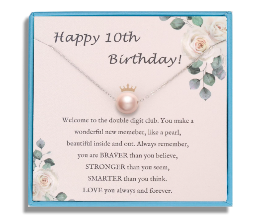Gifts for 10 Year Old Girl Birthday: 10th birthday is an important milestone! Present your daughter/granddaughter/niece this pearl necklace on her 10th birthday to show your deep love and wish for her sparkle and fortitude just like a pearl in the days to come.