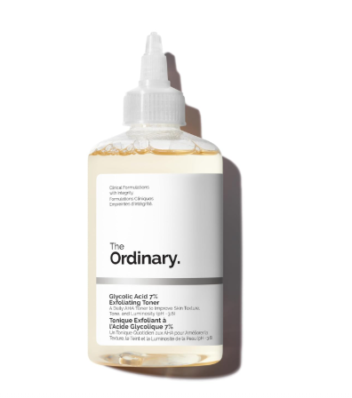 The Ordinary Glycolic Acid 7% Exfoliating Toner smooths skin texture, visibly evens tone, and boosts radiance with daily use. Contains Tasmanian Pepperberry, aloe, and ginseng.