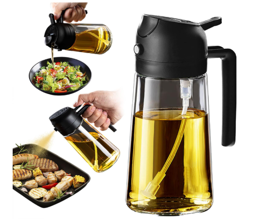 Dual Dispensing: This 2 in 1 oil dispenser and oil sprayer allows you to spray or pour with ease. It’s a versatile oil dispenser bottle spray and pour solution, keeping your kitchen organized and efficient