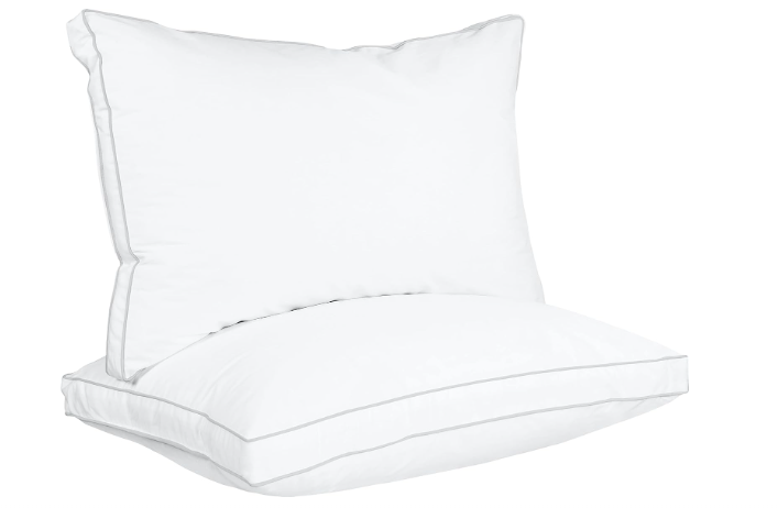 Gusset Bed Pillows – Set of 2 white gusset bed pillows with white piping and double stitching that gives a sophisticated look to the pillows and also improves durability