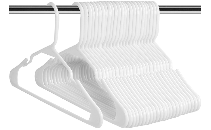 Plastic Hangers Pack – Pack of plastic hangers for closet organizers and storage with each hanger measuring 16 x 9.4 x 0.2 Inches.