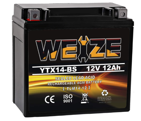 Weize YTX14 BS ATV Battery High Performance – Maintenance Free – Sealed AGM YTX14-BS Motorcycle Battery compatible with Honda Suzuki Kawasaki Yamaha scooter snowmobile
